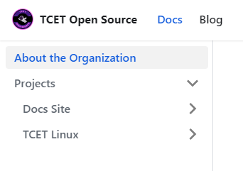 Thanks to these changes, we have successfully added various items to the Sidebar of TCET Open Source website, making it more informative and user-friendly. Here's how it looks: