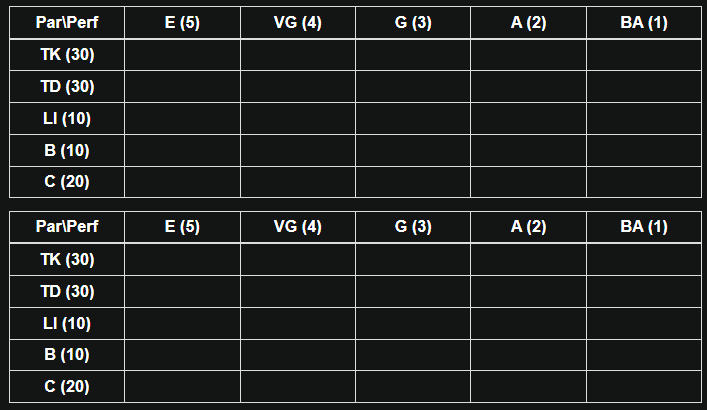 in various cell representing certain score.