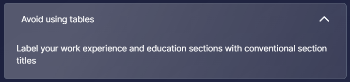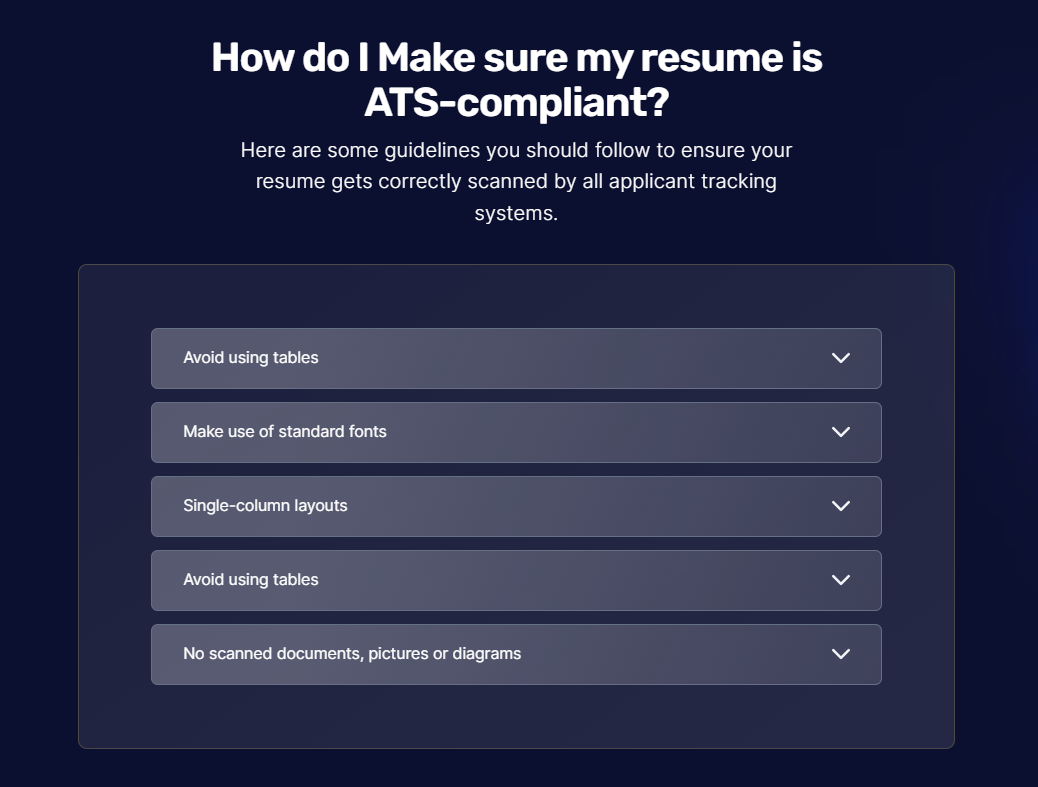 The Guidelines section provides some guidelines that a user can follow to ensure that their resume gets correctly scanned by all applicant tracking systems.