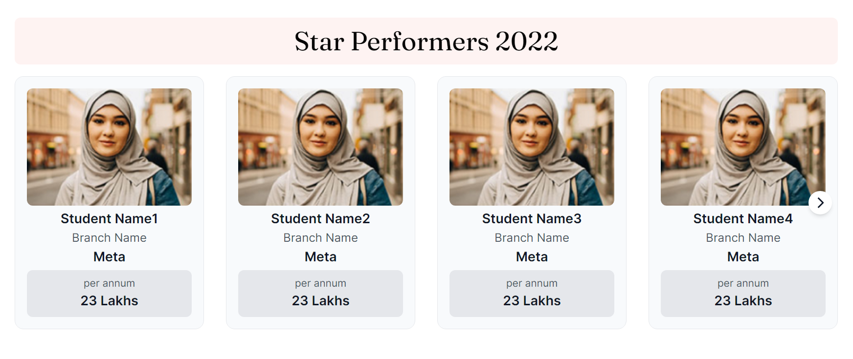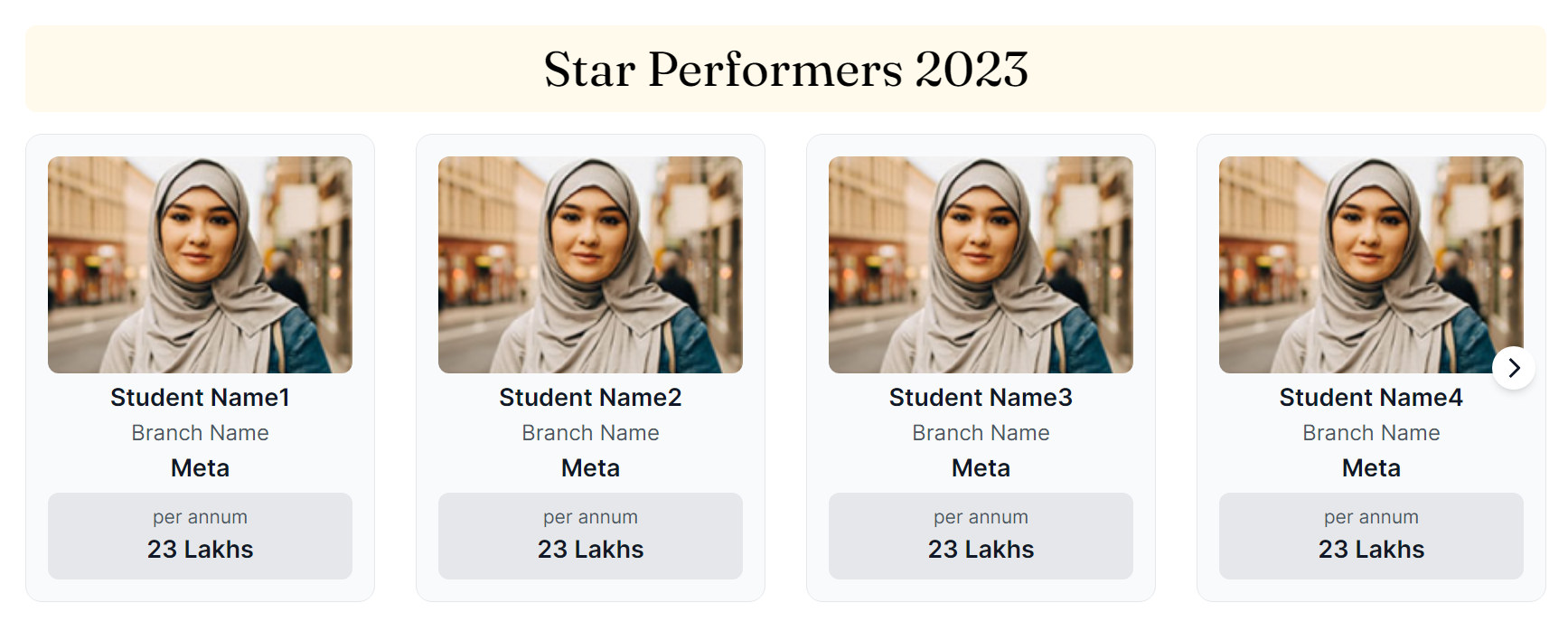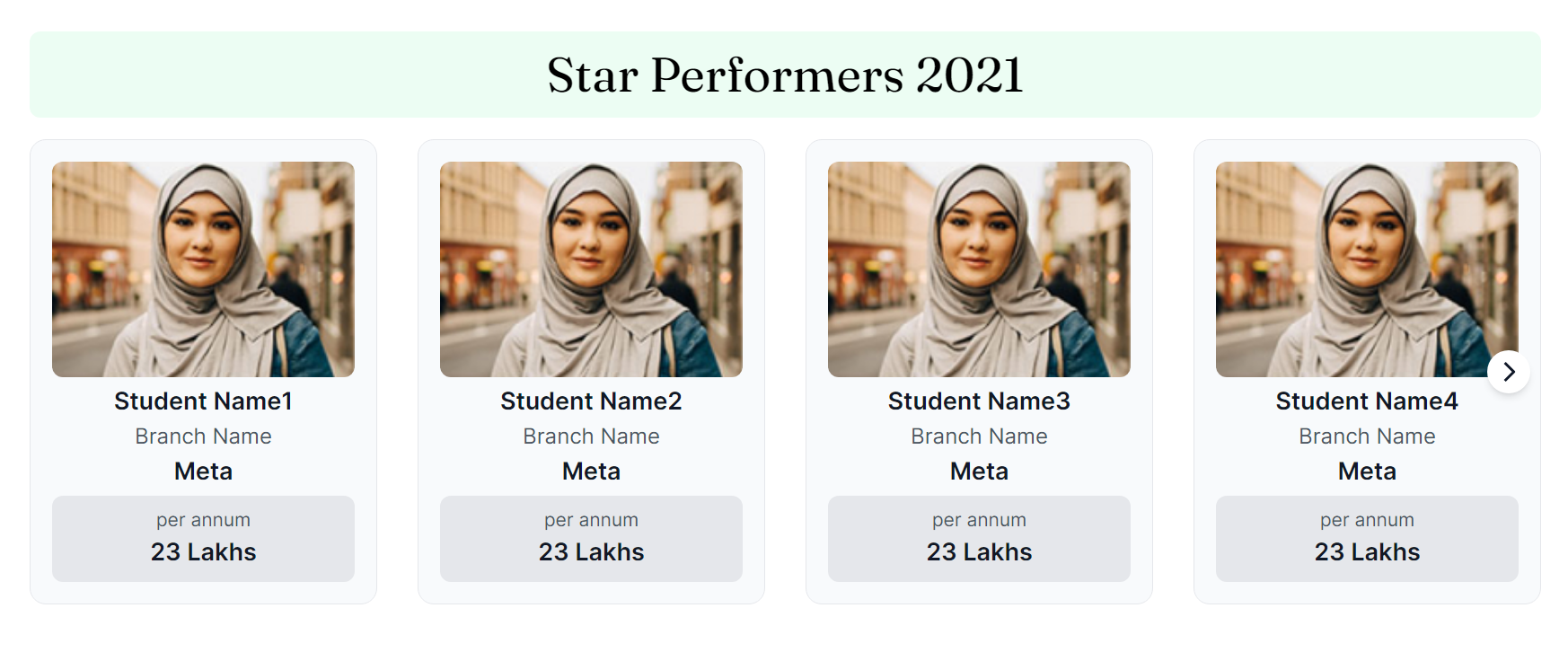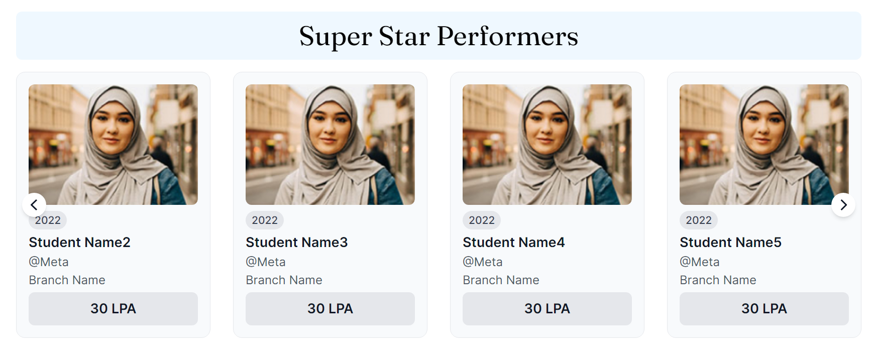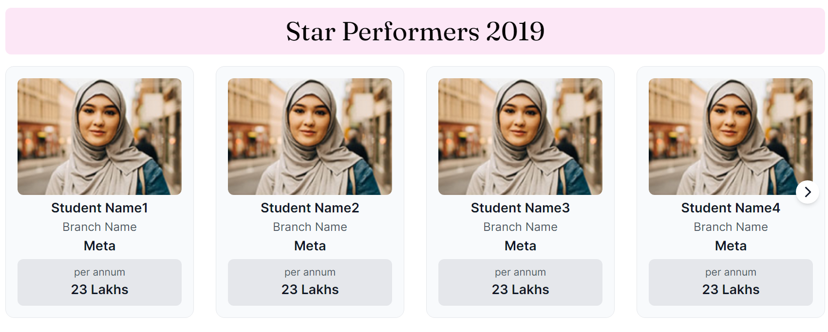 This section is similar to Super Star Performers section, where star achievers are displayed batch wise. For each batch a separate carousel is created.