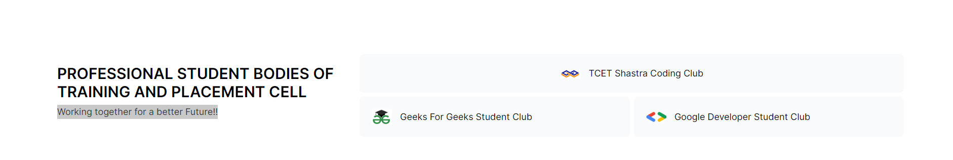 This section showcases the professional student bodies of the Training and Placement Cell. It provides information about the different student bodies and their respective logos.